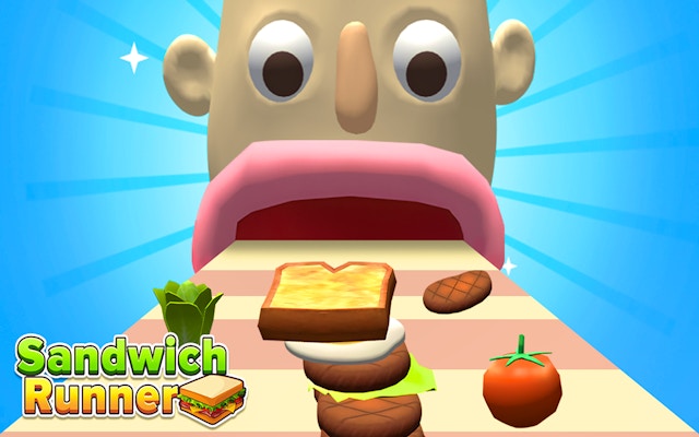 Sandwich Runner is a fun game. Collect ingredients on the way to the goal, how high will it reach? The diner is very hungry and he cant wait to eat. Collect steaks, chicken thighs, fried eggs, and sushi. Be careful to avoid bad food like mold and rot or it will make the diner sick! Red peppers will make the diner spitfire! Can you keep the diner happy and pass the level? Good luck! More game content requires you to explore, discover more fun and have fun.